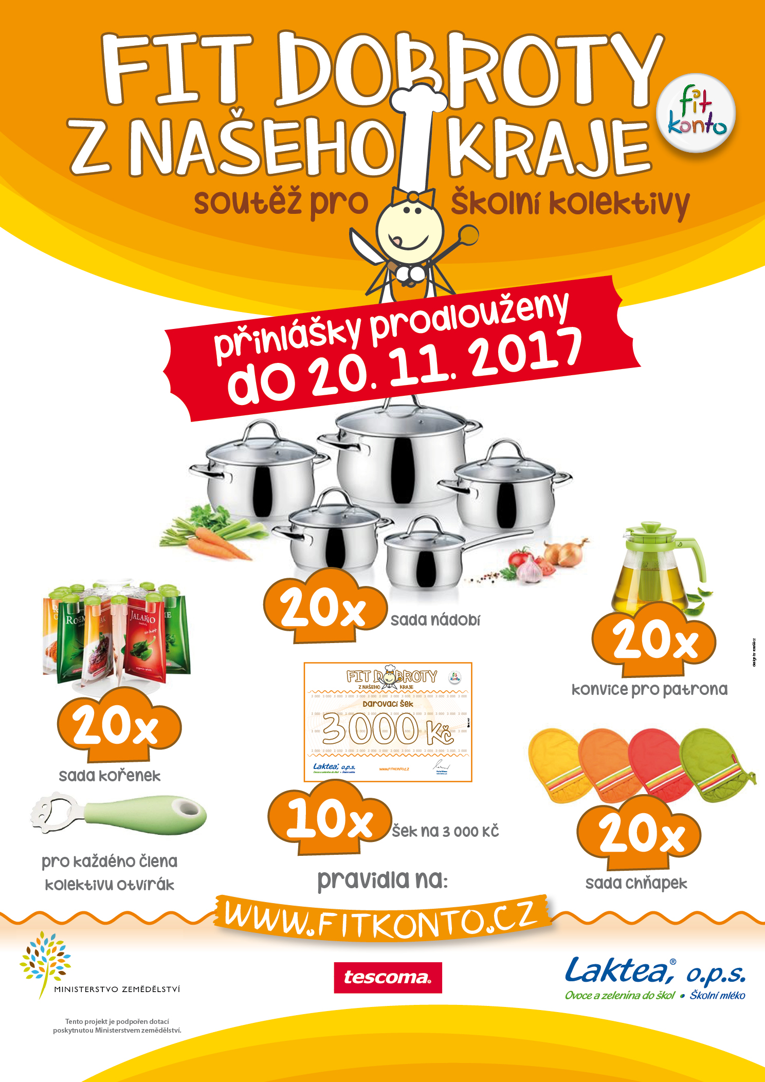 Základní údaje Propagační akce FIT DOBROTY Z NAŠEHO KRAJE (dále jen akce) probíhá na území České republiky od 1. 10. 2017 0:00 do 20. 11. 2017 23:59. Akci pořádá LAKTEA, o.p.s., se sídlem Krajní 680, 252 42 Jesenice u Prahy, Česká republika, IČ: 250 77 333 (dále jen pořadatel).