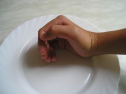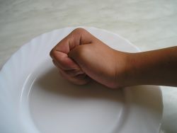 Můžeš si také představit, že porce je velká jako tvoje ruka – když ji zatneš v pěst. zaťatá pěst pootevřená pěst dlaň V případě zeleniny, těstovin, rýže, pečiva to může být pěst i trochu otevřená, ale u sladkých jídel a ovoce je lepší, když je to pěst hodně sevřená. Pro plátek masa, rybu nebo sýr ti pomůže velikost dlaně.