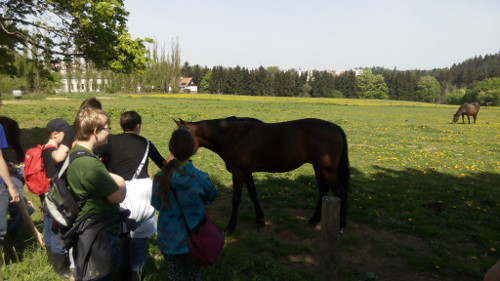 Při zpáteční cestě, na které nás provázel německý ovčák jménem Čertík jsme zase míjeli přístřešky s malými selátky, která byla ještě u svých matek, procházeli jsme kolem ohrady s koníčky a dávali jim trávu a pampelišky. Nemohli jsme se s nimi vůbec rozloučit, protože byli tak krásní. Na závěr naší prohlídky jsme se všichni sešli v malém obchůdku s biopotravinami. Měli jsme možnost ochutnat některé zdejší výrobky a koupit si je domů, aby je ochutnali také naši rodiče a sourozenci.