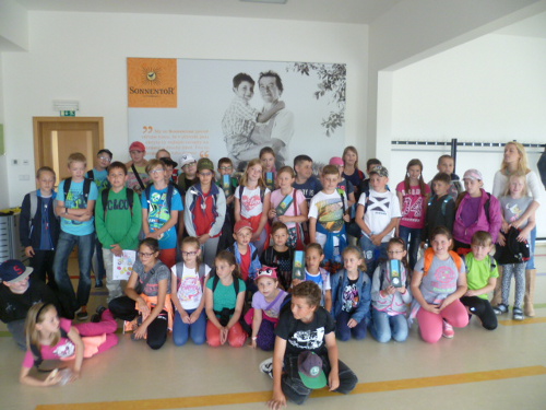 "V prvním červnovém týdnu se naši čtvrťáci a páťáci vydali do nedalekých Čejkovic. Na kopci kousíček za templářskou tvrzí stojí moderní budova, která uvnitř skrývá voňavé tajemství. Vlastně ani moc neskrývá – ta vůně je cítit už po cestě do kopce. Je to vůně bylinek z firmy Sonnentor, což znamená „sluneční brána.“ Tato firma vyrábí bylinné čaje v bio kvalitě. Kromě velkého skladu, ve kterém bylo tolik vůní, že se nám až motala hlava, jsme navštívili i výukový sál pro děti, kde nám celou firmu a proces výroby čaje představili bio-rarášci, kteří jsou maskoty firmy Sonnentor po celém světě. Dále jsme viděli stroje na čištění bylinek a balení čajů, ale spoustu práce odvádí pořád lidské ruce. Bylinky kolem firmy i rostou v krásně popsané bylinkové zahradě. Na této exkurzi si všichni mohli také zasoutěžit a vyrobit si vlastní čaj. Byl to zajímavý školní den a děkujeme FIT KONTU a společnosti Laktea, že nám jej umožnila zažít." Za zhodnocení exkurze paní učitelce děkujeme.